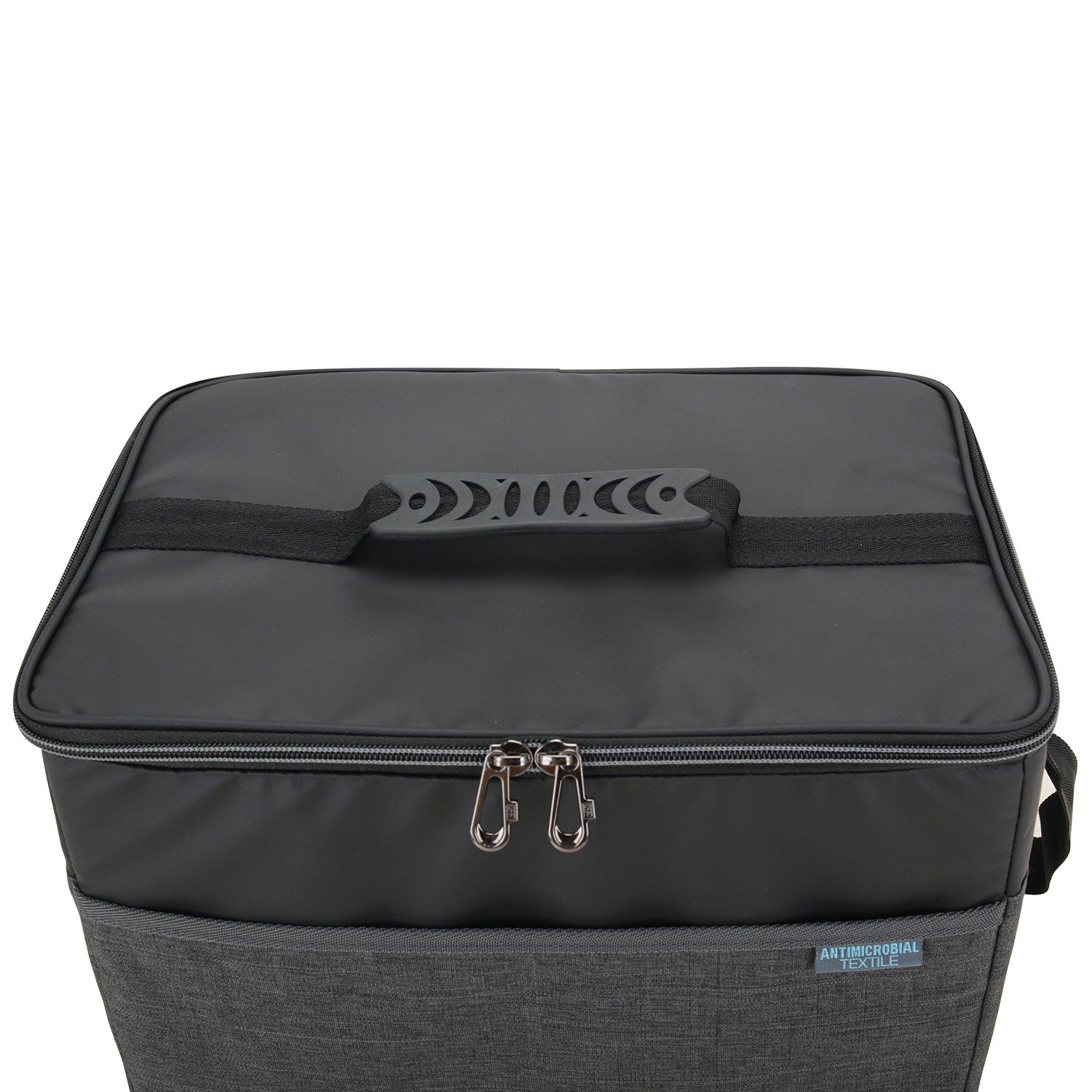 Carry along the 24 Can Artic Cooler Bag to take your food or drinks along for a picnic or for every day use. It features a large front sleeve pocket to secure smaller items. Have easy access with a top zippered closure. Padded with thick EVA form with PEVA lining for maximum insulation to keep your drinks cool. Includes a adjustable shoulder strap and durable top carry handle with rubber for comfortable carrying. Equipped with Shield-98 antimicrobial exterior fabric and interior lining to keep your cooler back clean. Well insulated cooler bag to keep frozen and perishable foods fresh during transit.