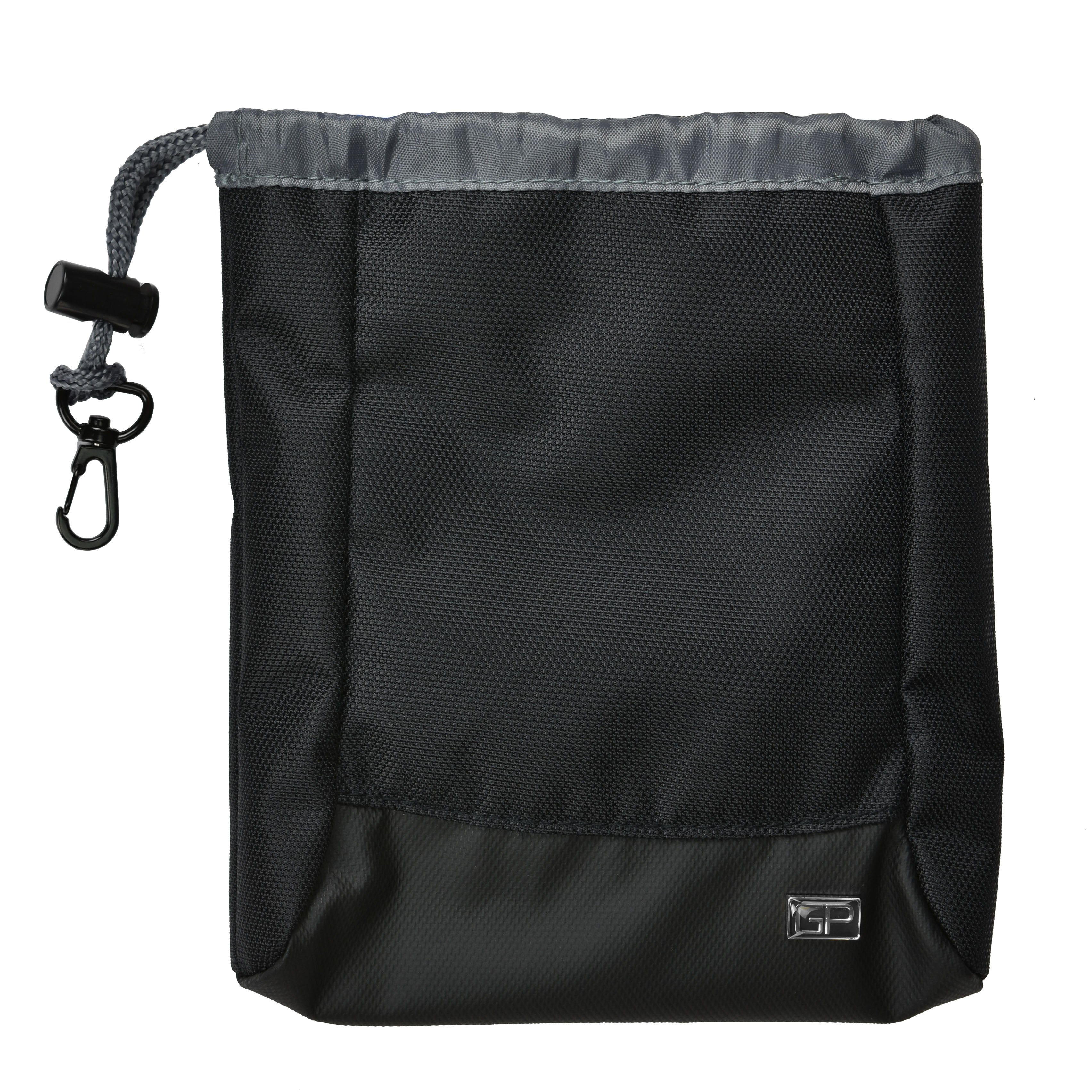 Carry along the GP Pro Pouch Bag to safely store and secure your essentials while golfing. Have easy access with a drawstring closure on the top, equipped with a quick release clip. The inside features a plush lining and a zippered mesh pocket to keep your belongings safe and organized.