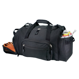 Take extra clothing and more along to the gym or on vacation with the Exodus Duffel Bag. It features top and side handles as well as an adjustable shoulder strap for comfortable carrying. A mesh tunnel holds shoes and keeps them ventilated. A large main compartment and zippered front accessory pockets accommodate your gear. This polyester duffel bag also comes with an insulated cooler bag to keep frozen and perishable foods fresh during transit.
