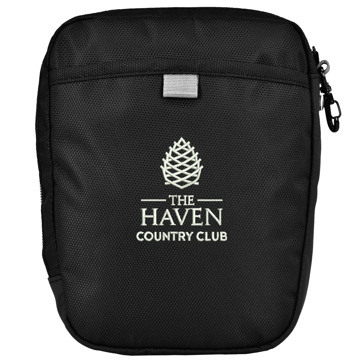 Carry to GP Pro Amenity Kit Bag to bring along all your important essentials on any golfing trip. The front has a open pocket for easy access, the main compartment has plush lining to your essentials safe. Inside is equipped with mesh zipper pocket and a elastic band for better organization. Equipped with a outer quick release clip, to clip anywhere easily and quickly. The perfect item to brand for any marketing opportunity.