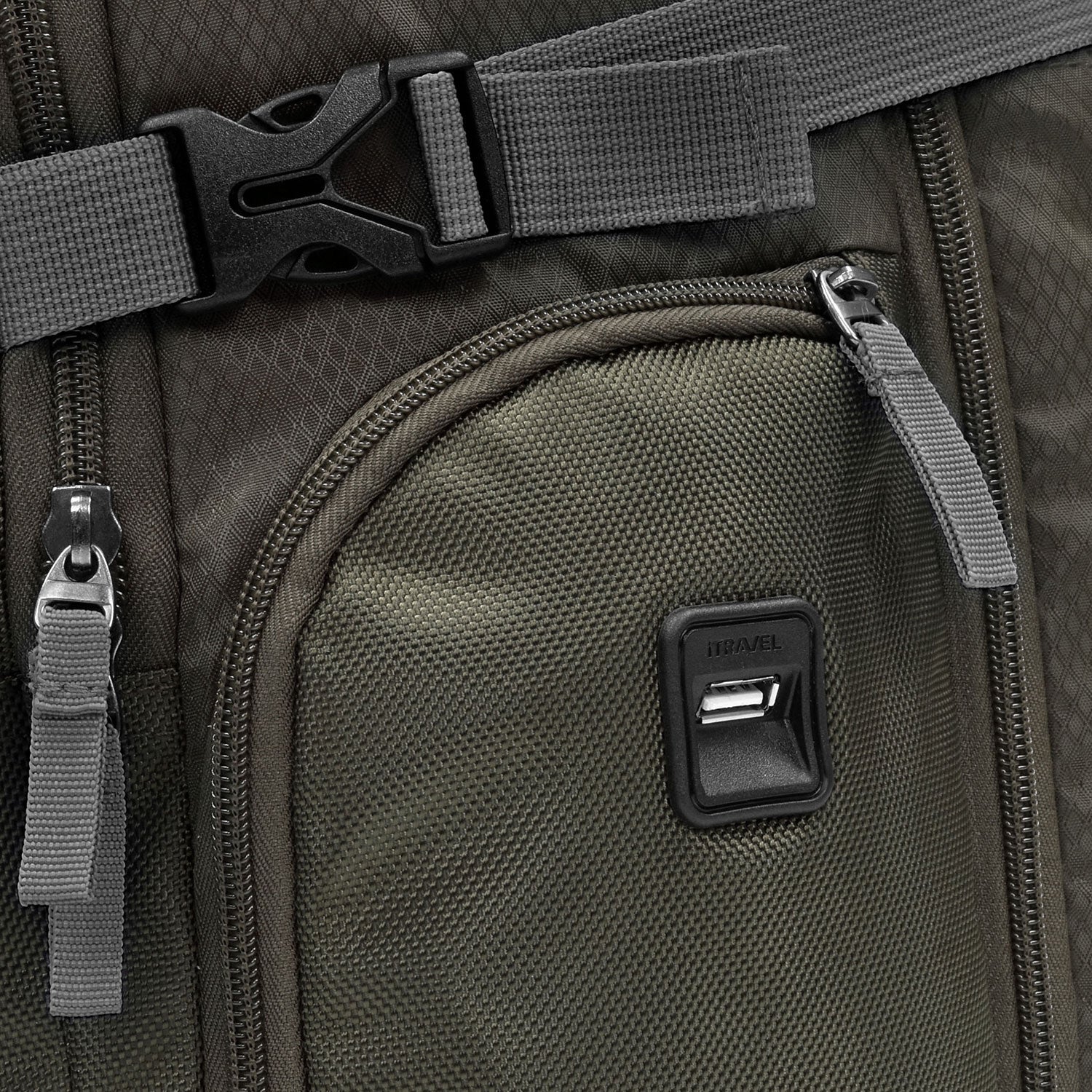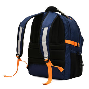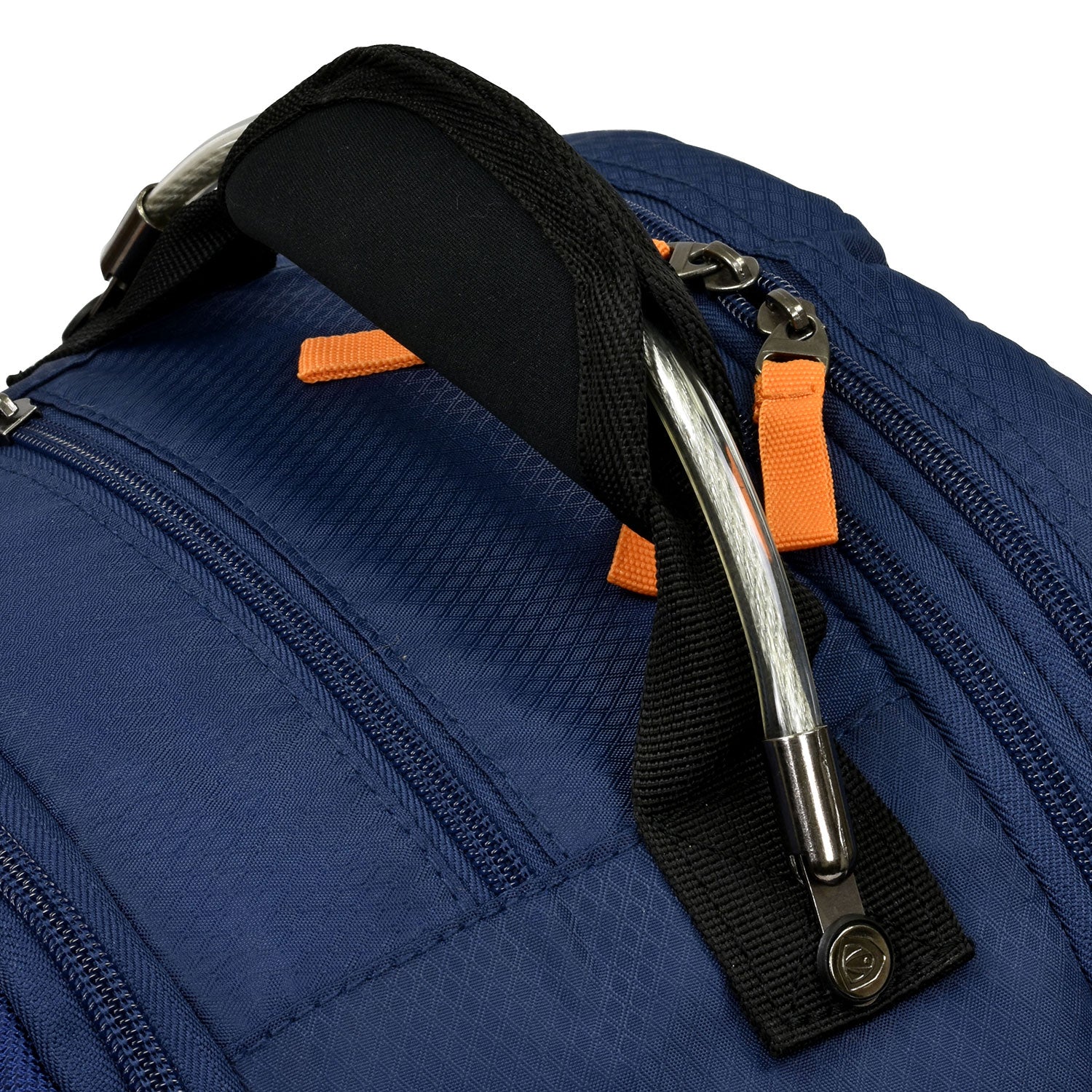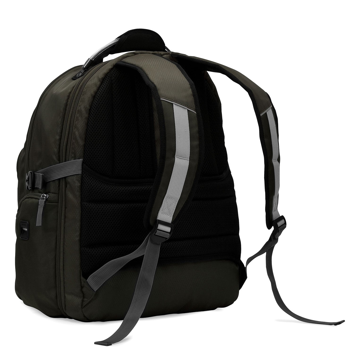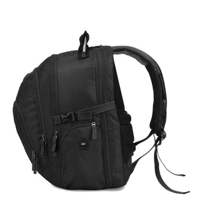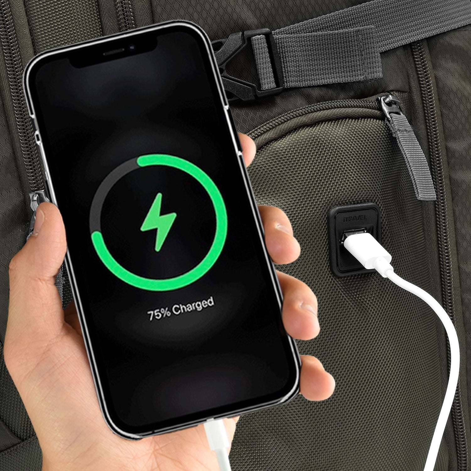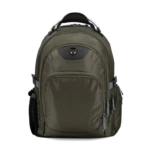 The 19" Hollins Laptop Backpack is a high quality durable backpack perfect for your daily commute or for travels. Secure your laptop or tablet with a padded laptop sleeve along with a micro fleece lined accessory pockets for sunglasses. Steel cable with neoprene padded handle for comfortable carrying. A USB port is built-in on the side to charge small devices (power bank not included).