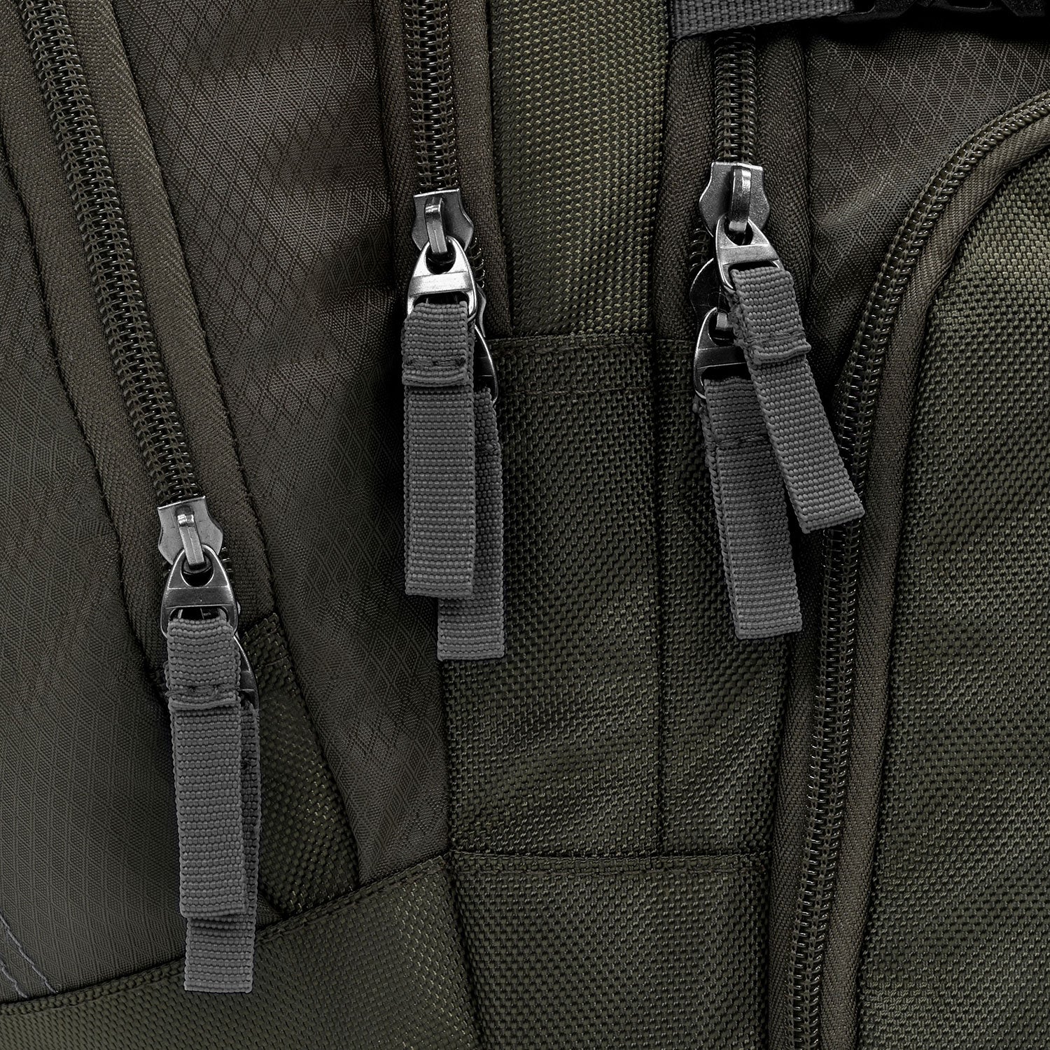 - Large front zipper opening with multi pocket organizer and zipper pocket