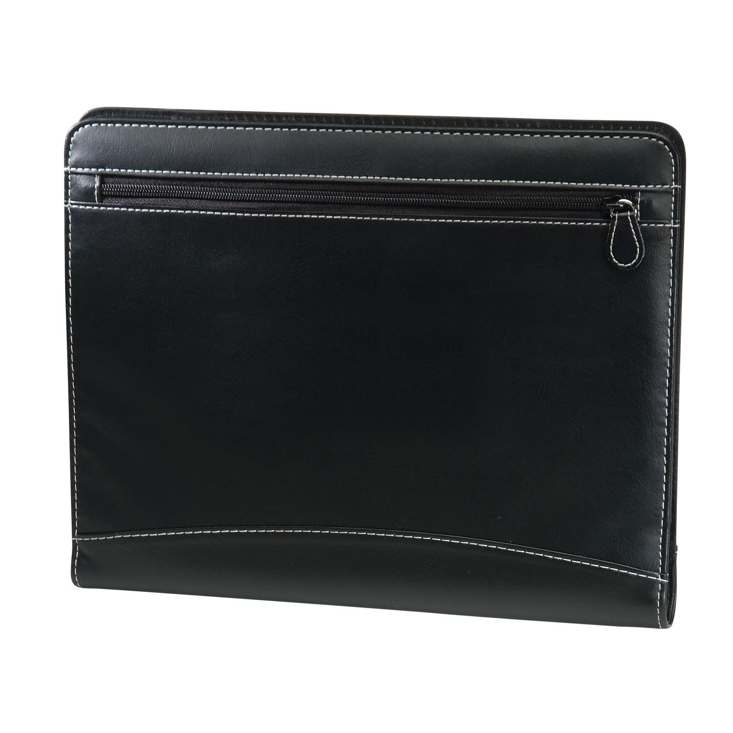 • Leatherette padfolio with white accent stitching.