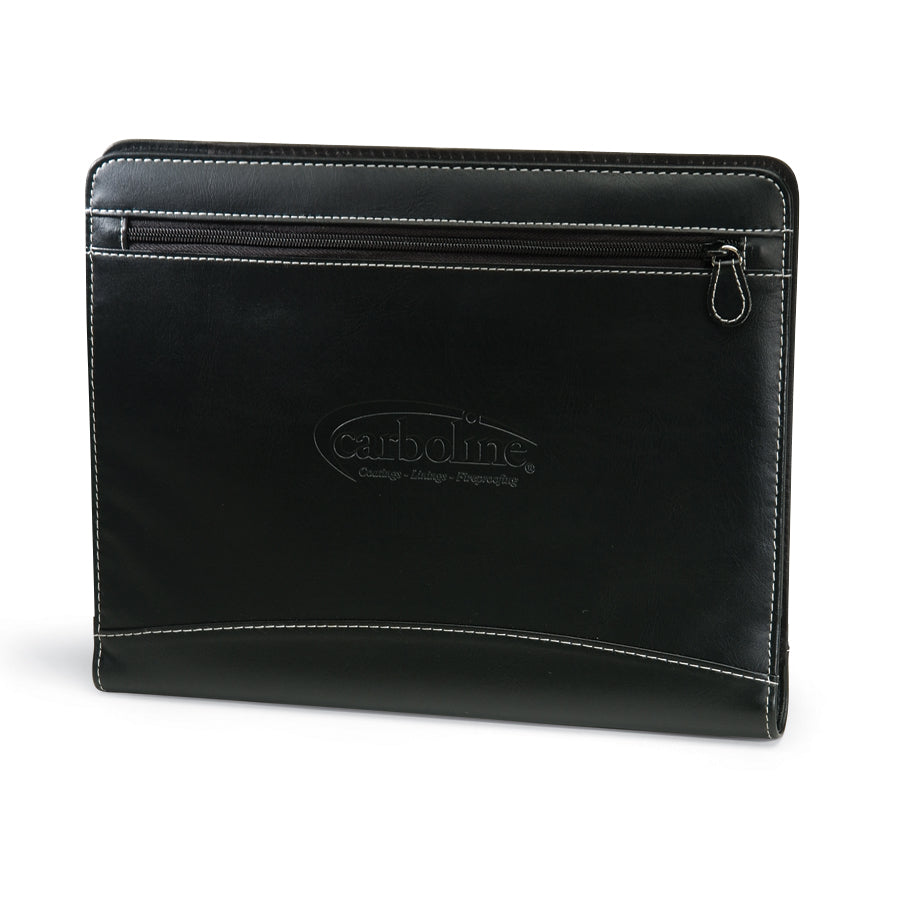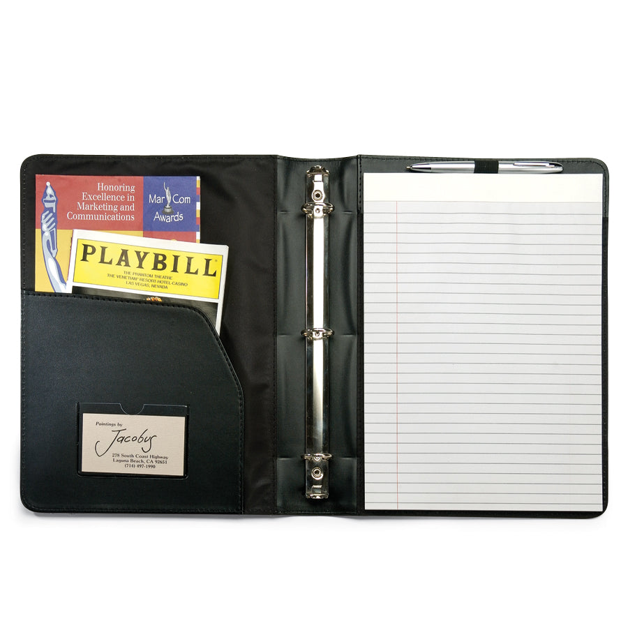 Get organized and look professional with the Perspective Padfolio featuring a front zippered pocket, 1" 3-ring binder and a clear ID window on the inside sleeve pocket, to keep all your business documents secured. A letter sized notepad is included to quickly jot down any notes. Handy to keep with you in any professional setting.