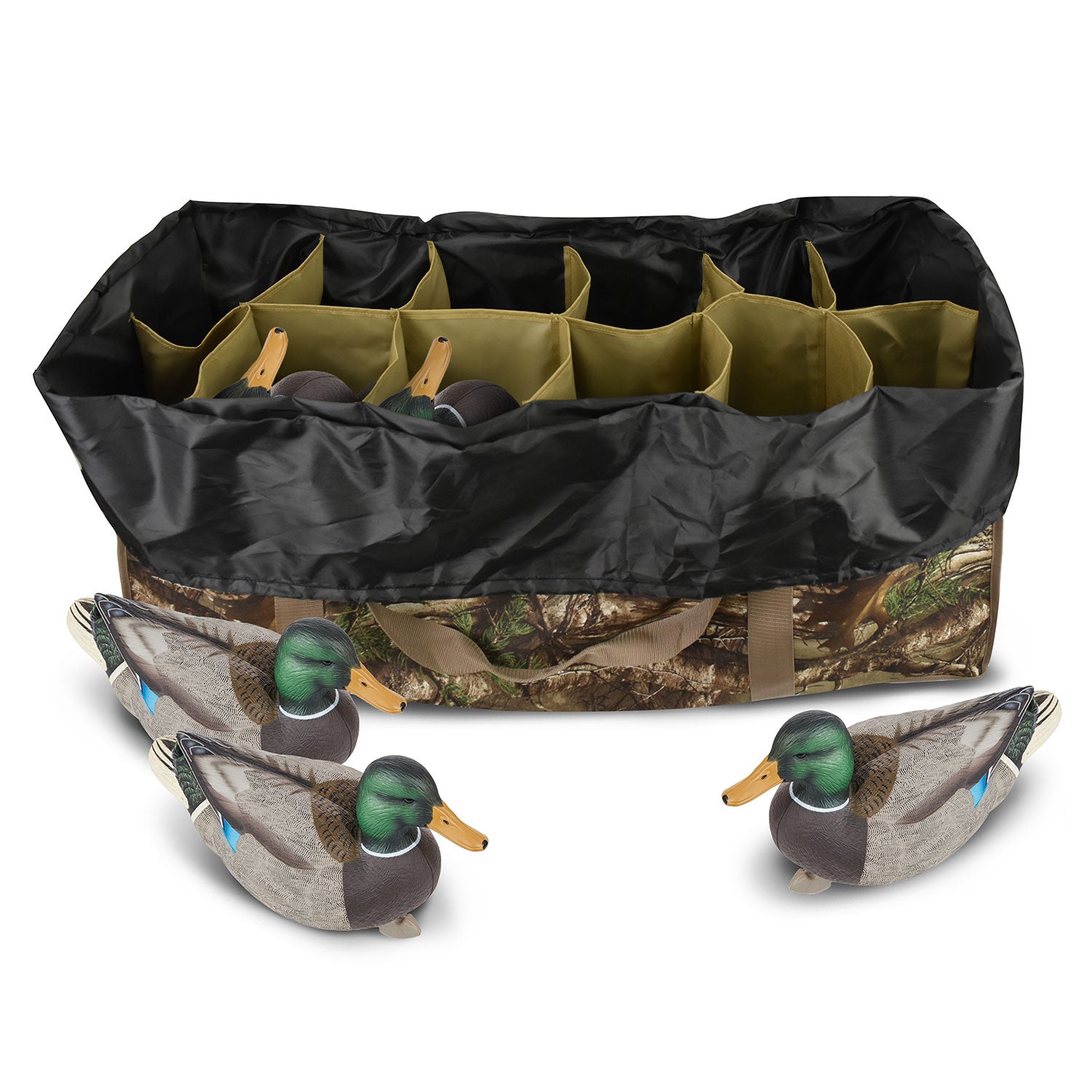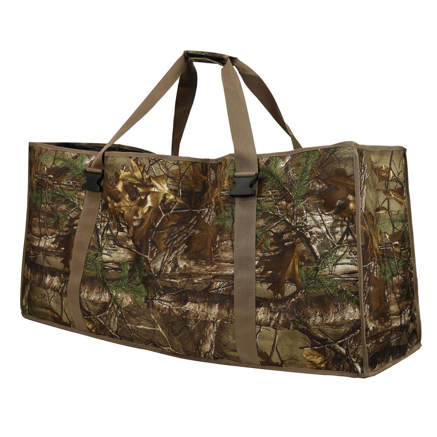 Hunt with the Realtree Decoy bag, equipped with 12 slots to carry all of your decoys. Get quick and easy access to your bag with a drawstring closure on top. The bottom has a quick-drain mesh panel to drain out water and reduce the carry weight. Equipped with durable 2" carrying straps and a adjustable padded shoulder strap for comfortable carrying.