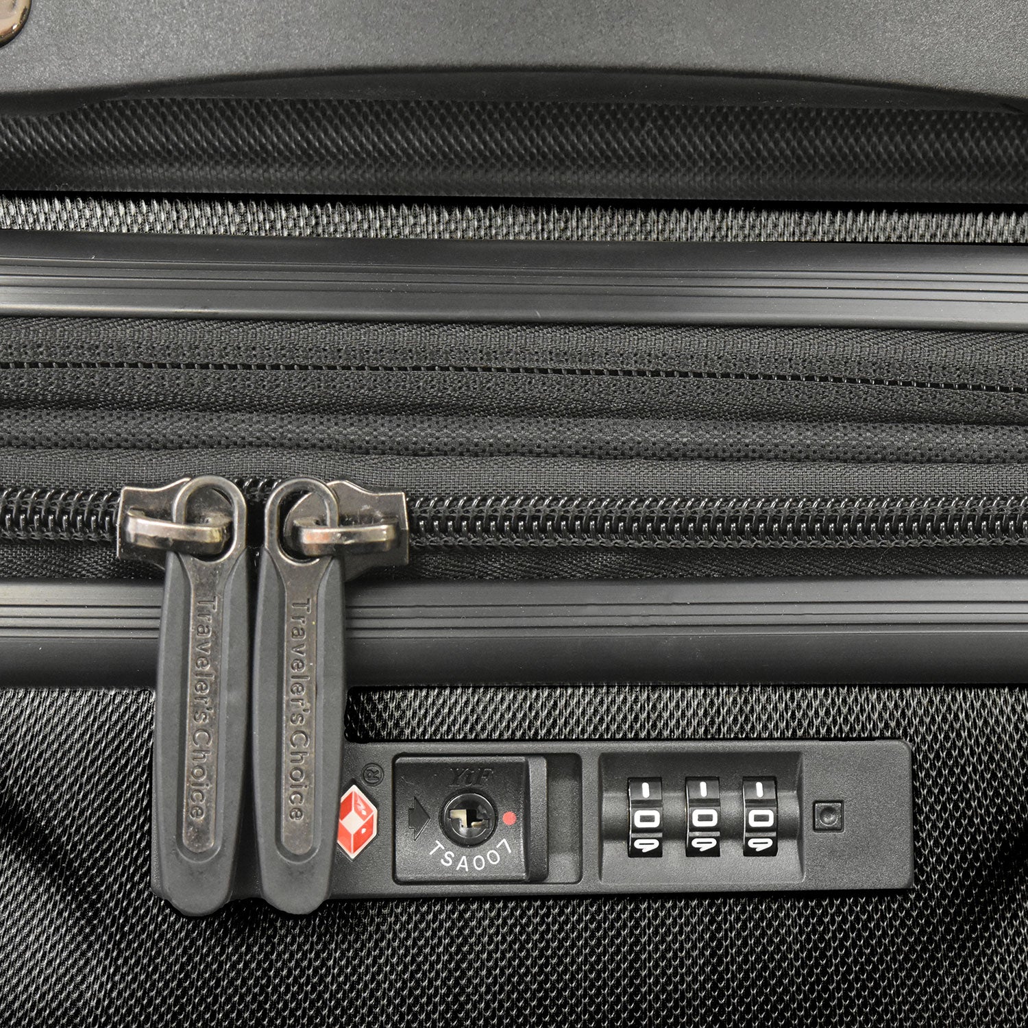Traveler’s Choice Silverwood is made of 100 percentage polycarbonate hard-shell to maximize protection of your belongings, the traveler's choice silver wood has a unique diamond-cut texture finish to prevent abrasive scratches and finger prints. The patent-pending T-cruiser handle system allows you to maneuver your bag with ease. The downward curve of the handle fits the natural position of your hand, thereby minimizing discomfort or fatigue. The double tubes of the handle system maximize the interior space for packing and still allow for a 2nd bag to be carried on top. The push-button mechanism and multi-stage locking feature allows you to adjust the height of the handle to maximize comfort.