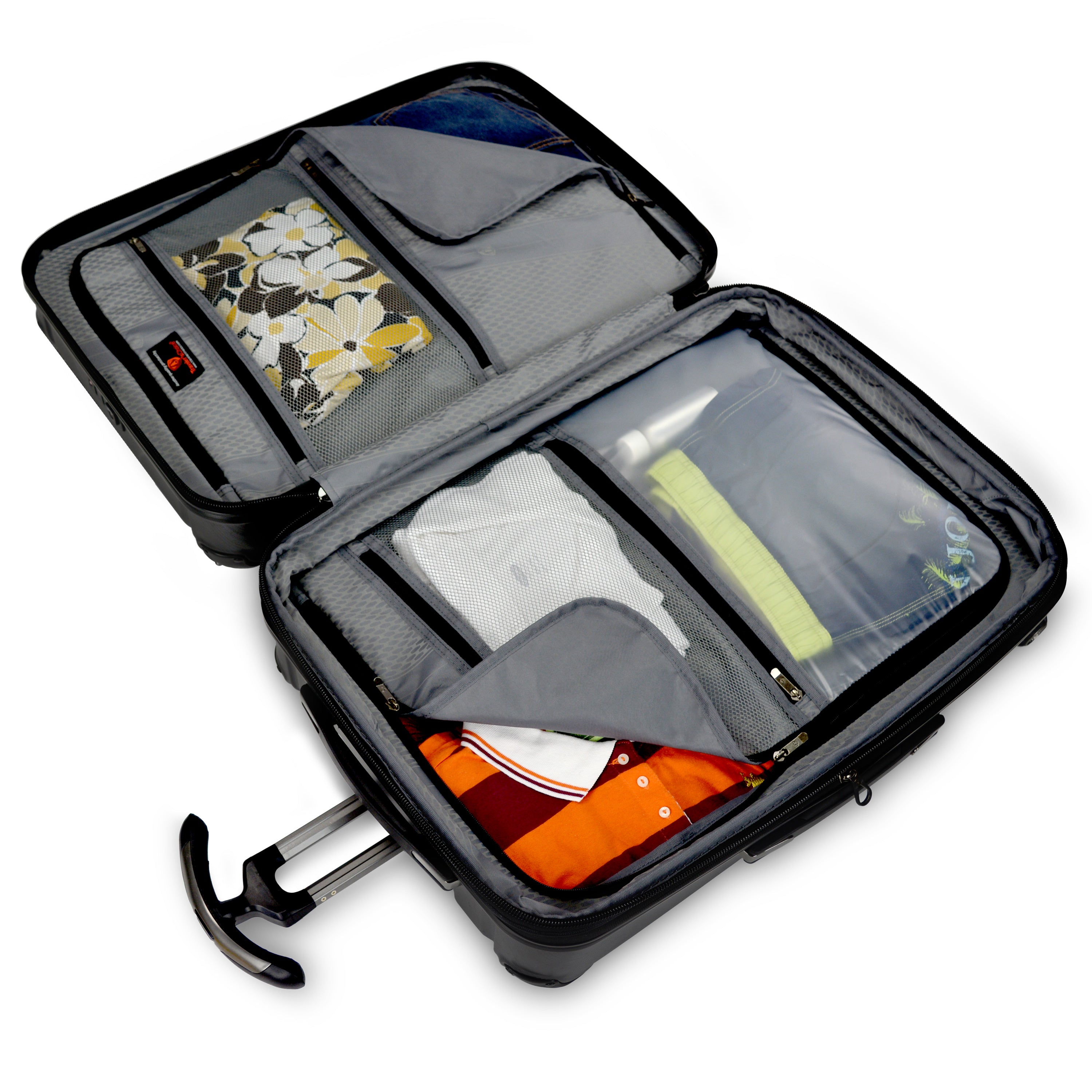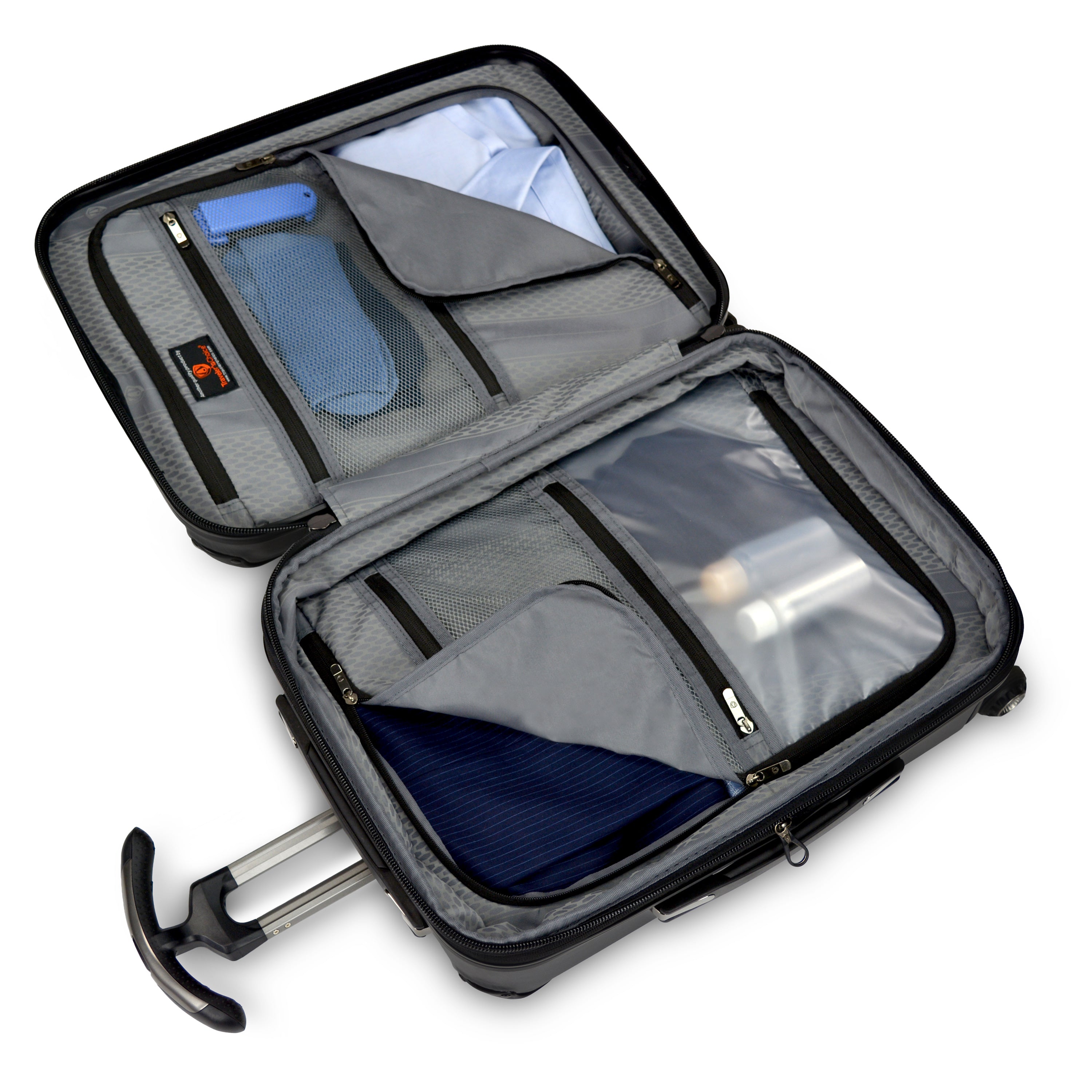 Carry-on: 21”H x 14”W x 10”D, 7.4 lbs.
