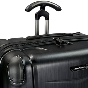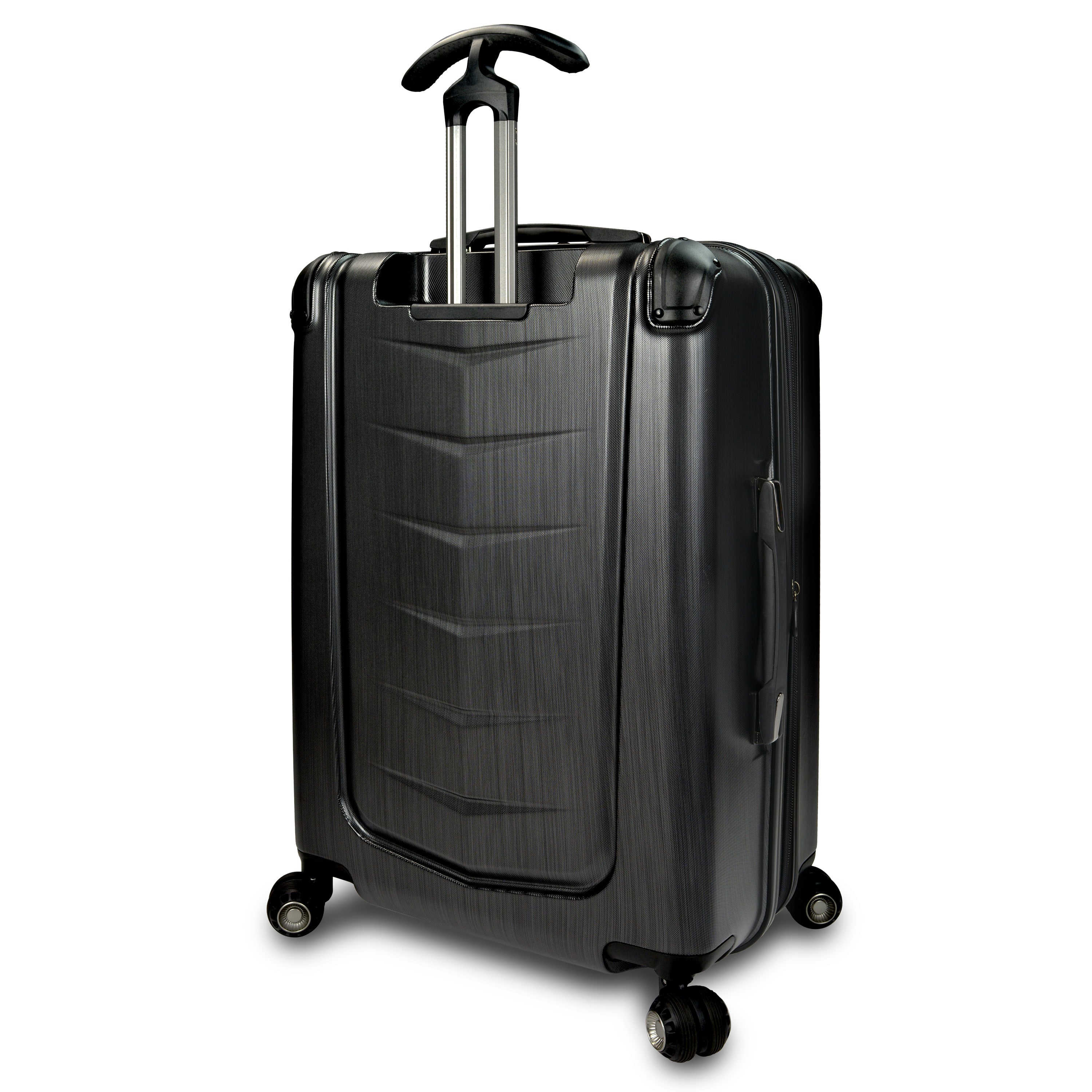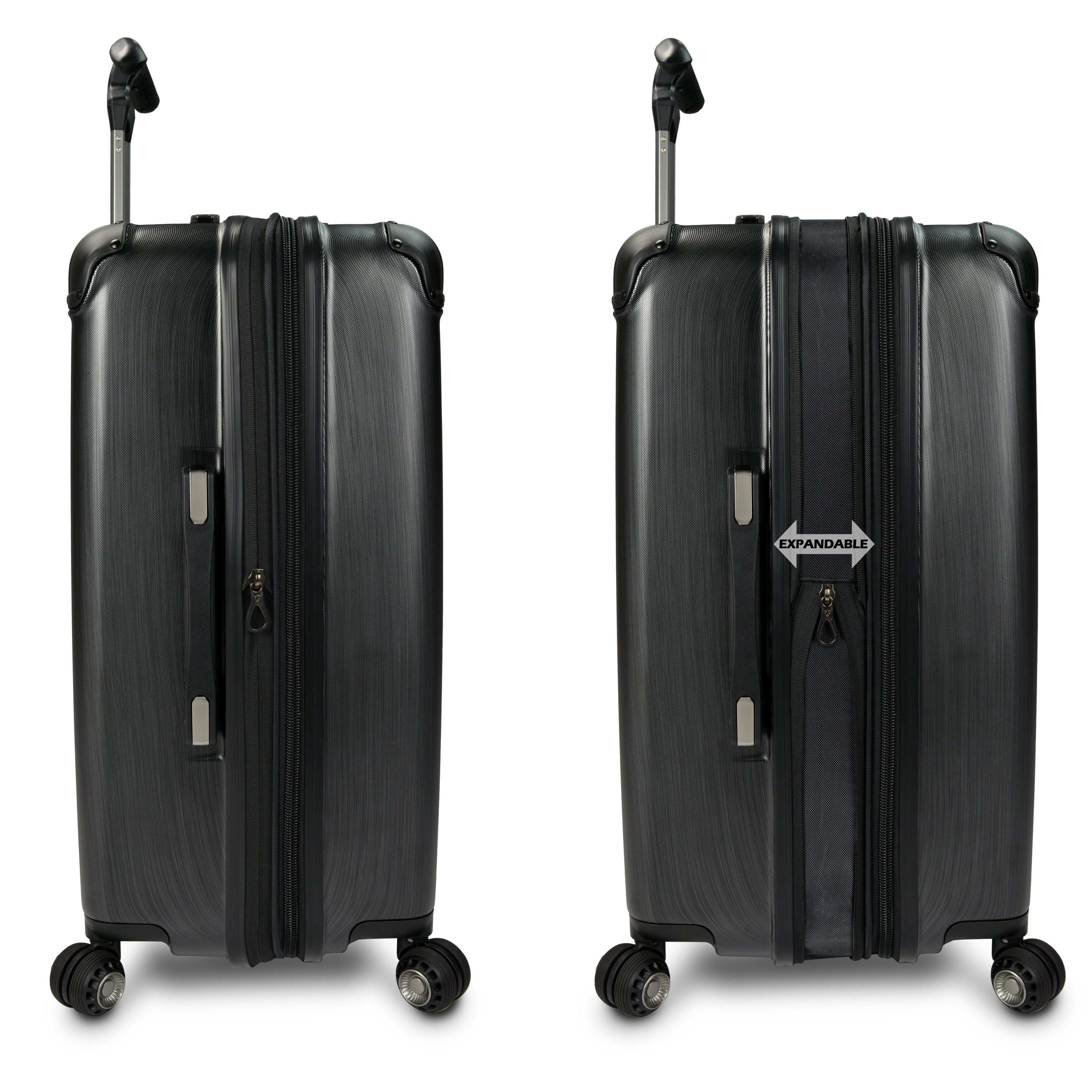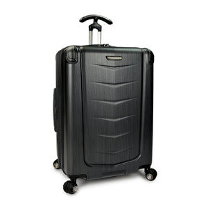 The Silverwood brings together style, protection and convenience in one luggage set. With its 100% polycarbonate hard shell and unique brush metal finish, it's not only tough and protected from abrasions and fingerprints, but also visually stunning. The patented T-Cruiser handle system and Dual Cyclone Spherical Spinner Wheel System make maneuvering a breeze, with a handle that fits the natural position of your hand and wheels that provide stability and traction. Security is also a top priority with a built-in TSA compliant flush mounted combination lock and hard plated corner guards. And packing is made easier with an expansion gusset that adds an extra 2 inches of space, and a main compartment with a large claim-shell opening and anti-theft zipper. The soft top, side, and bottom handle grips allow for easy lifting, and the built-in portable charger pouch and iTRAVEL smart USB port allow you to store and charge your personal devices on-the-go.