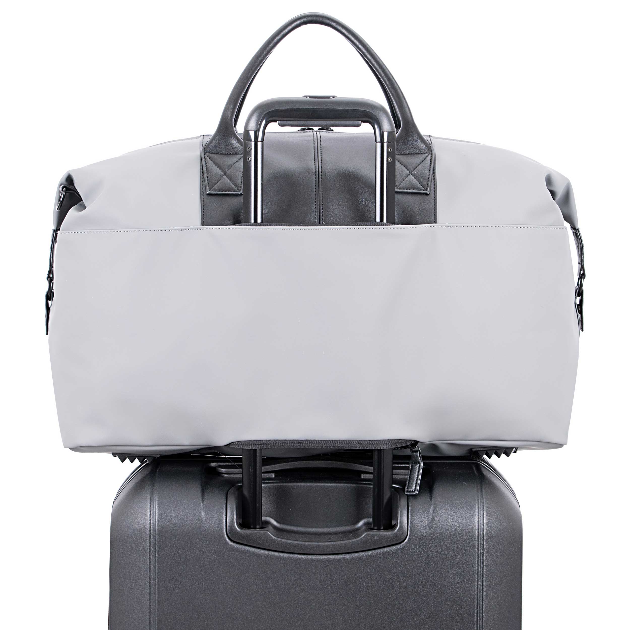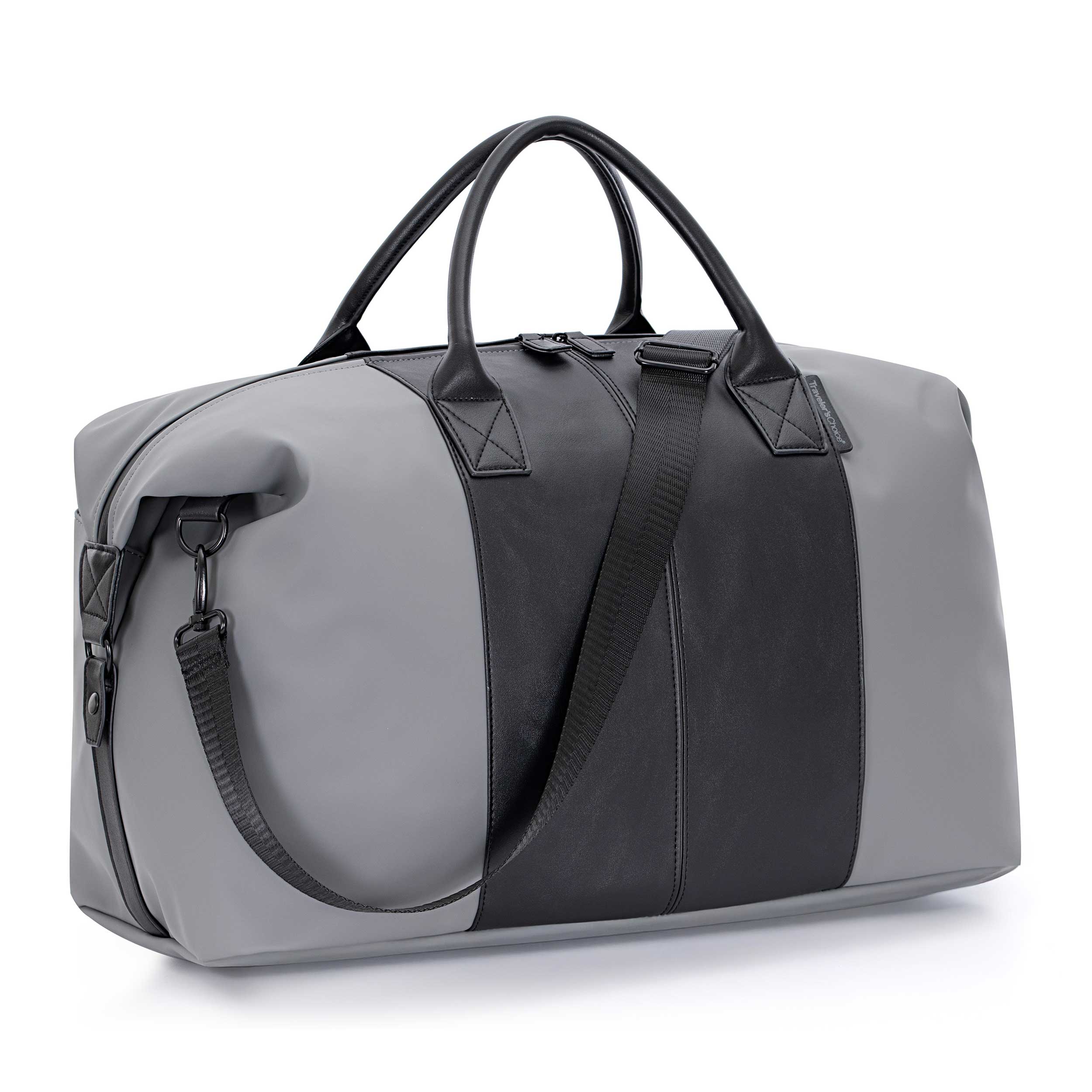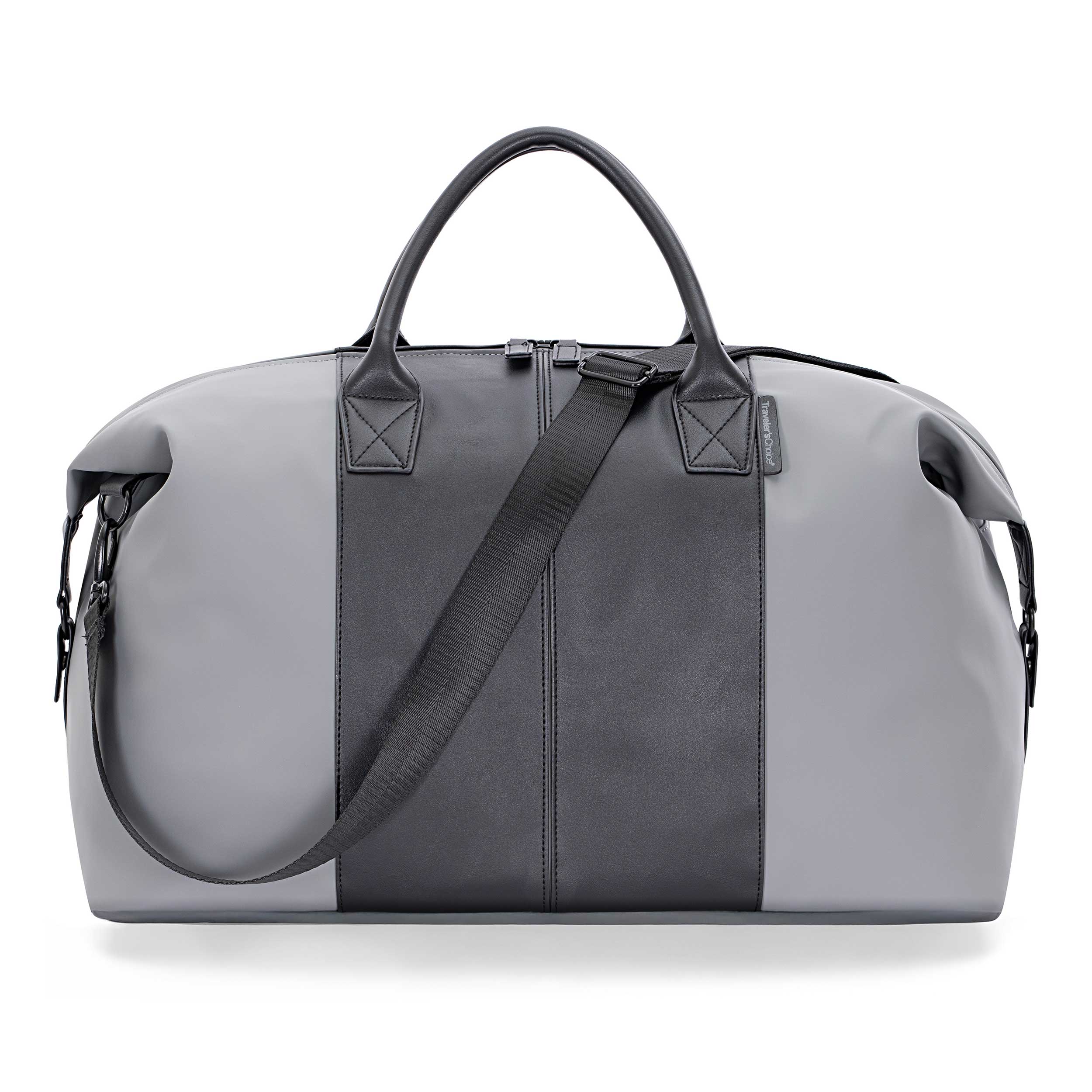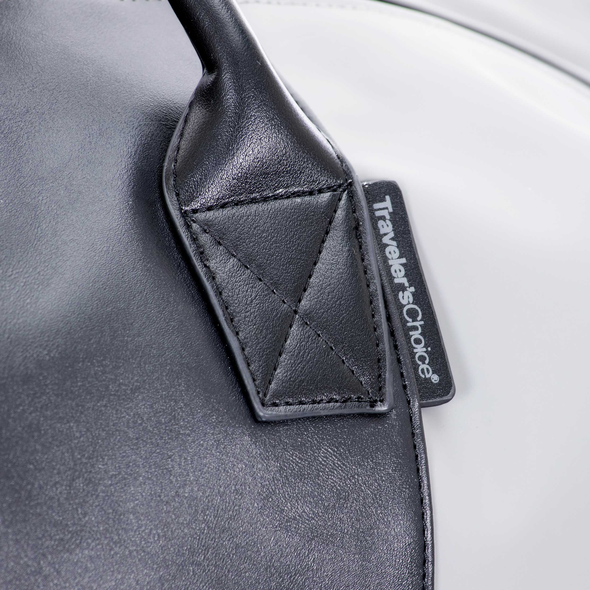Travel with confidence with Traveler’s Choice Sorrentine 21" Weekender Bag. Crafted from matte-finish vegan leather, this sleek bag offers style and versatility. Use the side snaps for a rounded silhouette or leave them open for a more structured, square look. The roomy main compartment includes a side pocket for easy organization. Carry it your way with a detachable, adjustable shoulder strap or the padded top handle for added comfort. Plus, luggage loops let you easily secure the bag over your suitcase handle for smooth, hands-free travel.