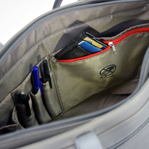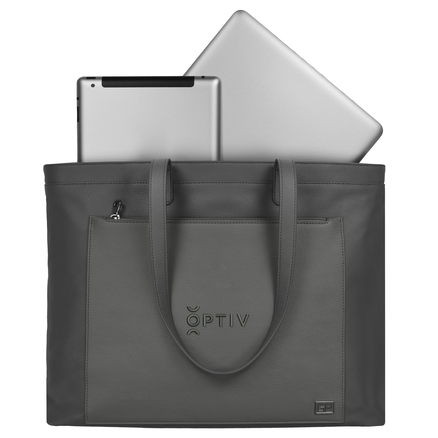 The Bella/Venus Computer Bag is a multi-function organizer that is ideal for storing a smartphone, writing instruments and accessories. The zippered top closure with front slash pocket is ideal for storage. Interior padded compartment with Velcro closure to store a laptop (fits up to a 15" laptop). Zippered interior pocket to hold a tablet (fits up to a 10" tablet with a case). Mesh pockets for cord organization. Easy-access keychain clip.